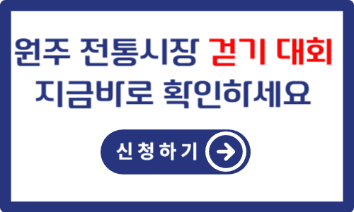 2025 원주 전통시장 걷기 대회 신청하기 2025-06-15 by bongjur 원주 전통시장 걷기 대회 지금 신청하기 👉 전통시장 걷기대회 신청하기 위 버튼을 누르시면 해당 사이트로 이동합니다. 2025 원주 전통시장 걷기 대회 신청하기 전통시장 구경도 하고 건강도 챙기는 일석이조 걷기대회!2025년 6월 29일(일), 원주에서 열리는 신바람 원주전통시장 걷기대회 6차가 원주 도심 한복판에서 진행됩니다.워낙 알차고 정감 있는 행사라 미리 정보 정리해두려 해요. 혹시 관심 있는 분들은 참고하세요.